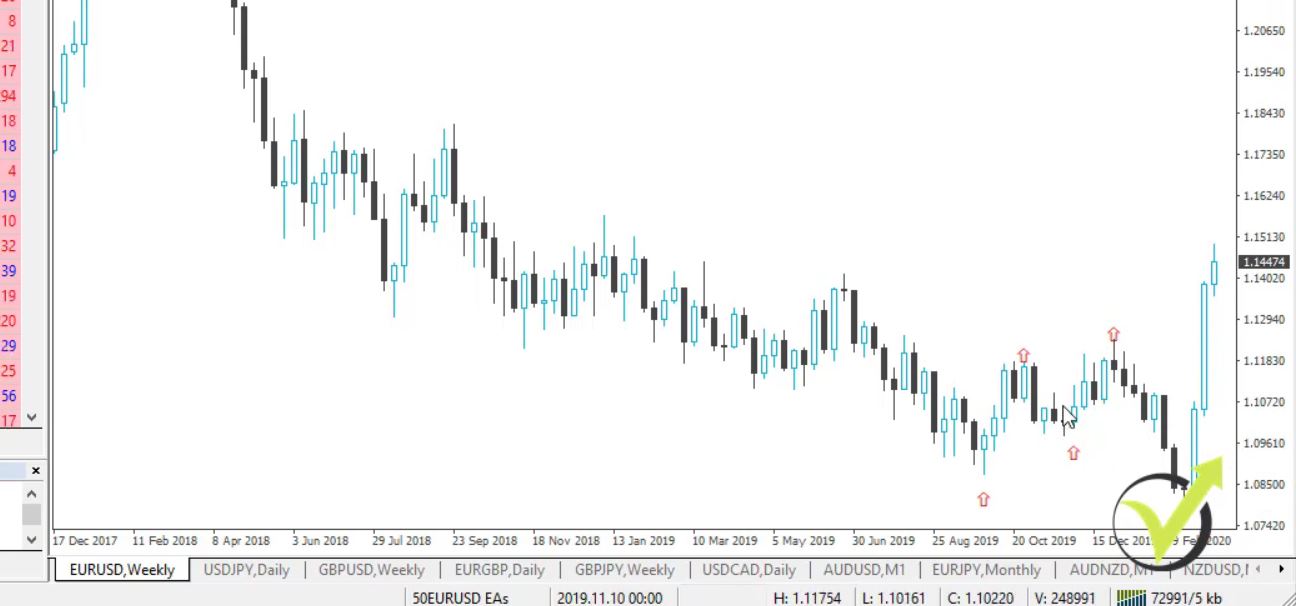 But when did I stop trading the EURUSD? Right over here at this short-term uptrend. Let me put the arrows so you can see it.