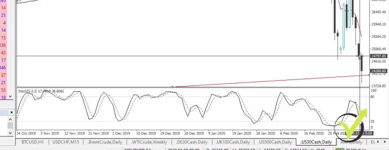 You can see what a massive gap we have over here. The coronavirus and the markets went crazy over the weekend. And normally, after such a gap we can see further sell-off. However, if you are looking to sell, I’ll suggest you keep your Stop Loss a little bit higher if you can afford it, either over the gap or either at the high that we have at 27,000.