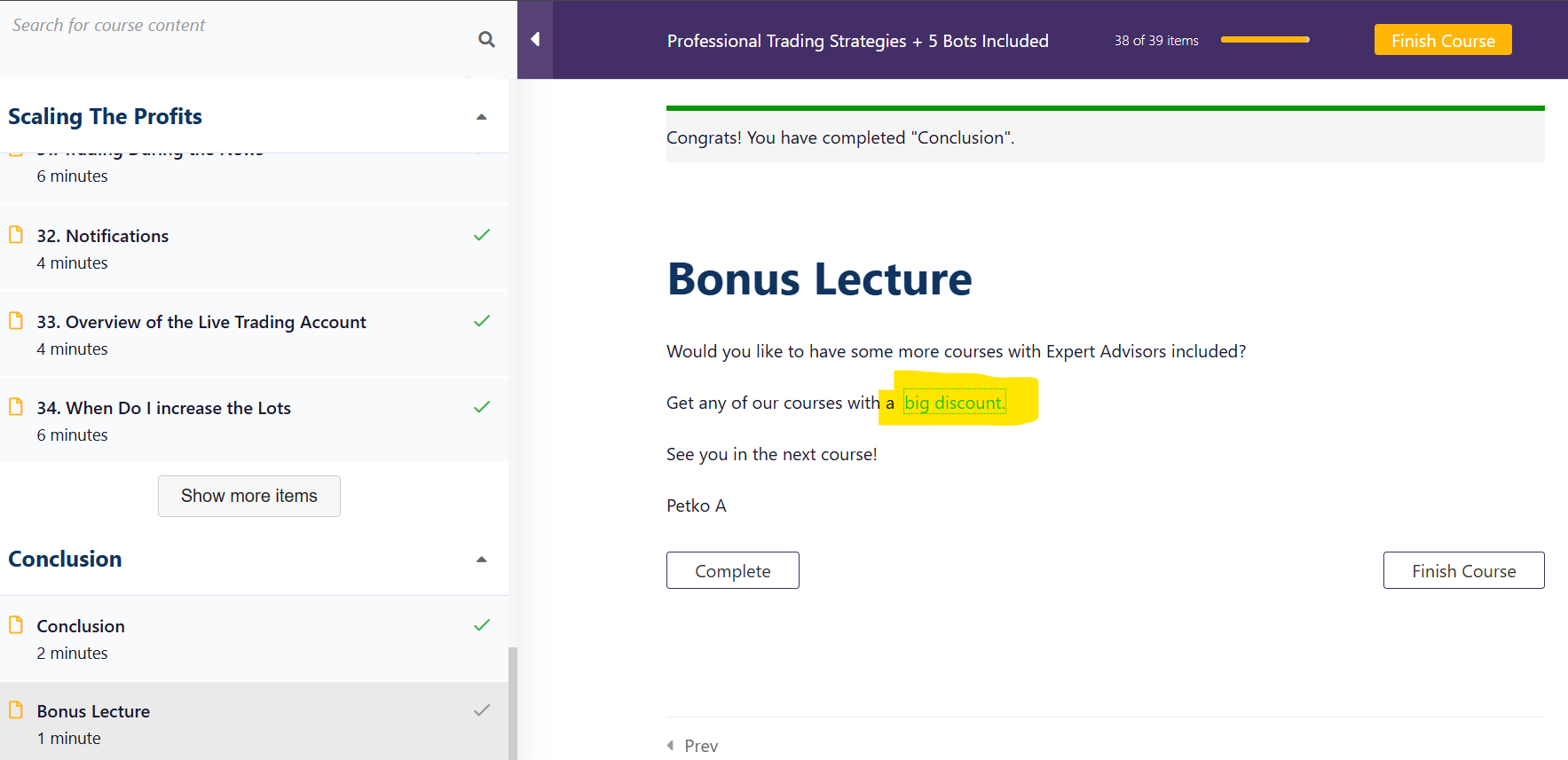 Participant<p style=”text-align: center;”>Hello, I’m taking the 21 day course. It’s been 2 days. I’m about done with the free course and I’m testing the EAs with my own broker. Shouldn’t I’ve gotten the other parts to the course by now?</p>