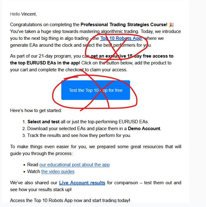 The links in the “DAY 10! Trade the Robot with a WORLD RECORD” does not allow me connect to the crm.eatradingacademy.com site for reasons not know to me.