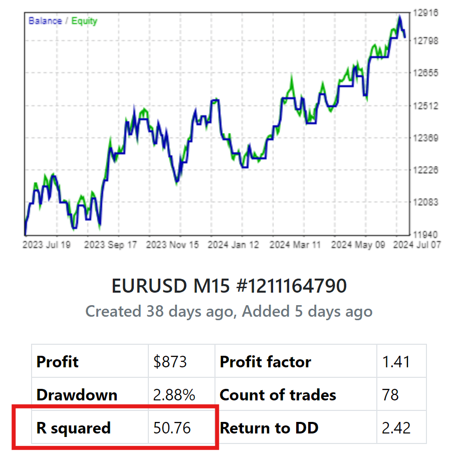 A statistical measure indicating how well the strategy’s performance is influenced by broader market movements. It helps to assess the strategy’s dependence on market conditions. An R² of 0 means that none of the performance can be explained by the index used for comparison. An R² of 50 for example, suggests that approximately 50% of the strategy’s performance can be explained by fluctuations in the benchmark. Please check this forum post to learn about R-Squared.
