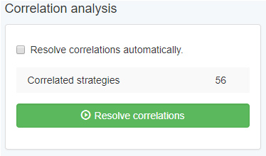 If you don’t set the Correlation Analysis in the Collection to resolve the correlations automatically, it will display the correlated strategies and you will have the option to do it manually by clicking on the green bar: