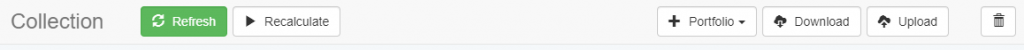 Recalculate – here you can recalculate all the strategies in the Collection. The application loads the corresponding market for each strategy and performs a new backtest.