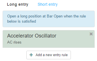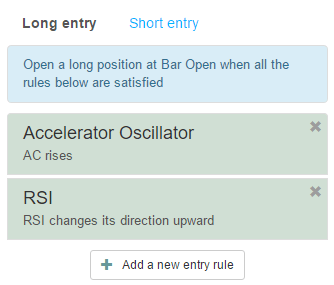 Therefore, the rules that correspond to a long position can not trigger a short position. There are cases in which when conditions are met, both long and short positions are opened at the same time. An example indicator for this would be the Accelerator Oscillator.