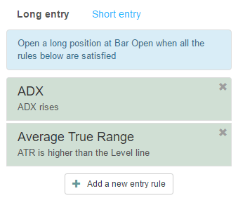 If you change your mind about any of the indicators you’ve added, you can remove it as an Entry rule by using the X option at the top-right corner of the entry rule boxes.