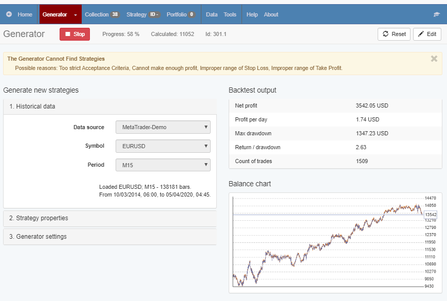 • you can run a backtest on the strategy based on your broker’s historical data using either EA Studio or MetaTrader