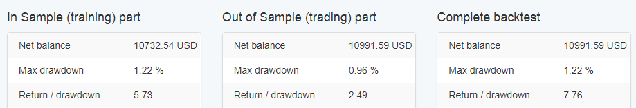 In addition, it represents separate statistics for the In Sample and the Out of Sample parts.
