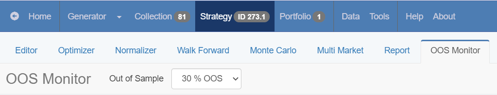 There is a drop-down menu from which you can choose what percentage of the data to use for OOS Monitor testing.