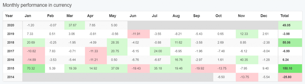 It easily generates a few hundred strategies, and the ones with the best performance go in the Collection. When you click on each one, you see the real performance with the Forex Trading Simulator