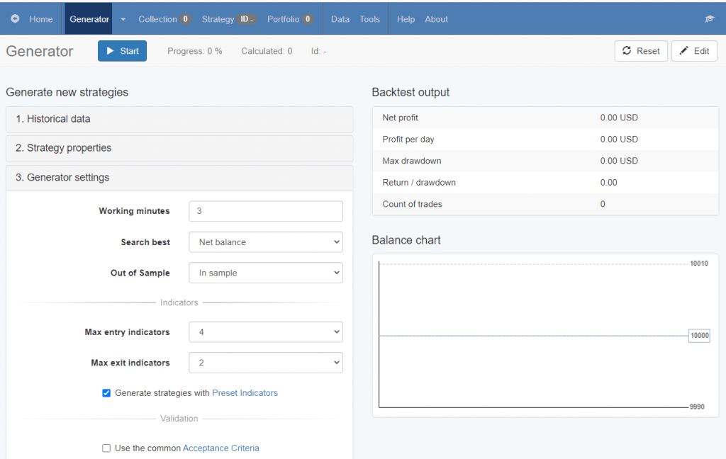 If you choose to use any preset indicators in EA Studio, the Generator is going to create strategies according to them.